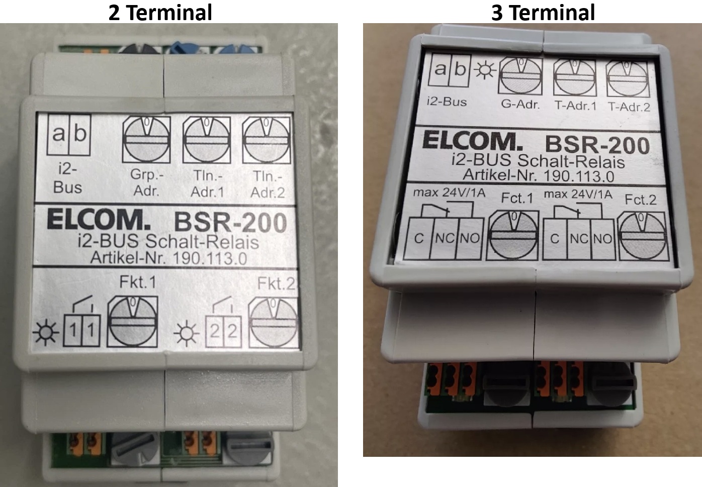 - BSR-200 (2-terminal, “1/1”, “2/2”): a→one “1/1”, Nuki green→the other “1/1”; same addressing and Fct.1=7.