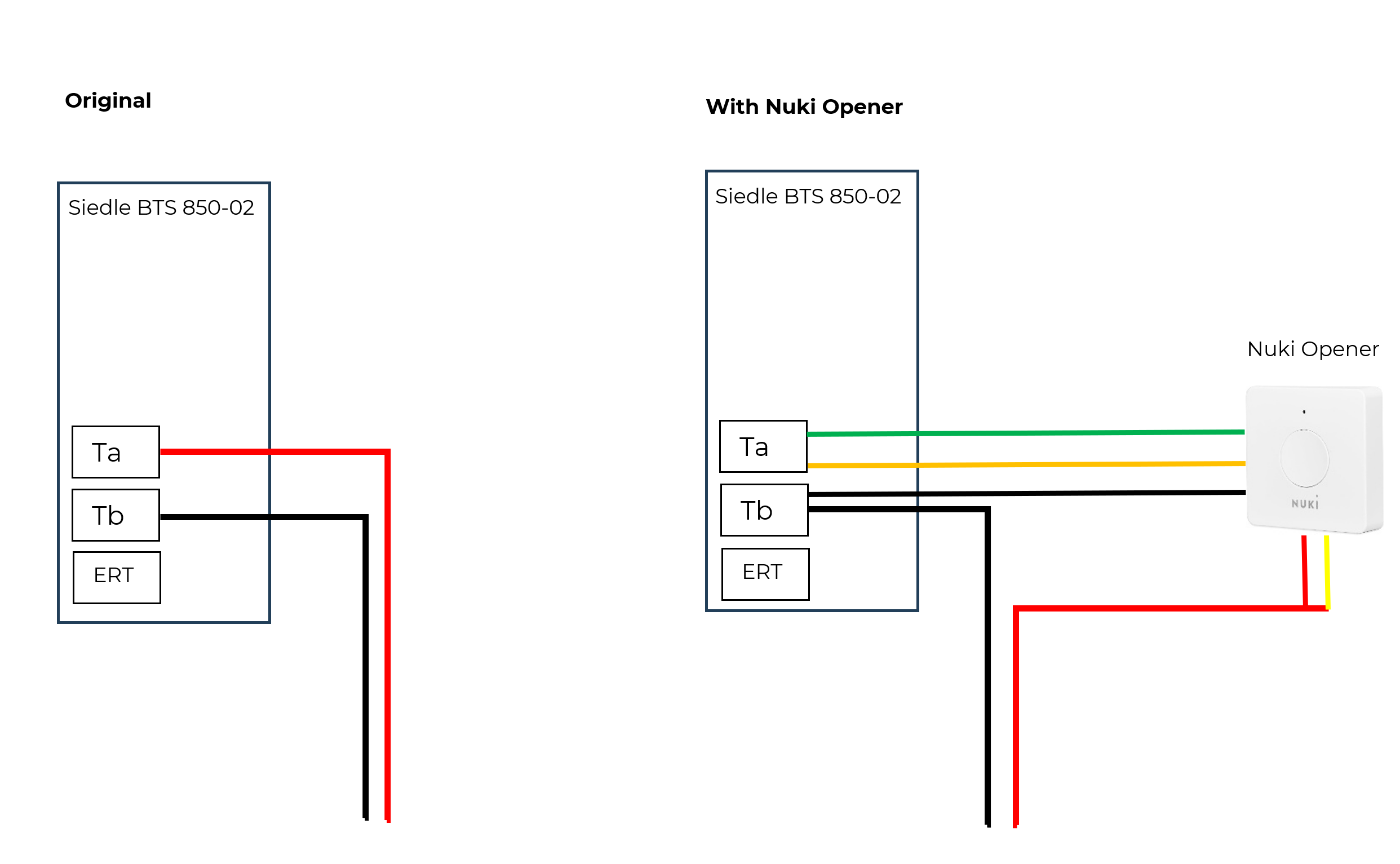 But there is a LAN cable in the office. My idea is to connect the Opener via a 50 m long LAN cable. In this case, the signal between Siedle and Opener is very weak. And the door is not always opened with Opener. And I can no longer open the door using the Siedle buttons. See image.