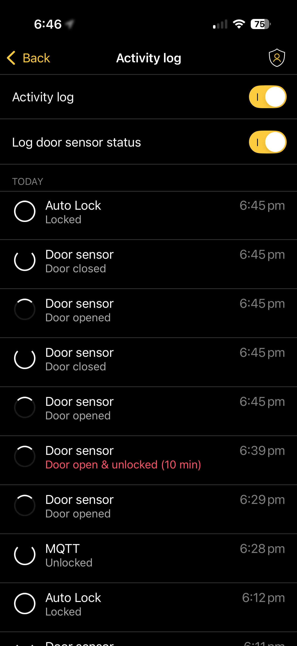Here is the log from the app. The door was open less than 1 minute but as you can see it reported differently. Battery still shows Good. Firmware is 1.20